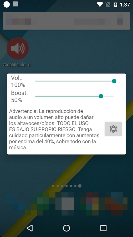 Cuando se establece el impulso a cero, Amplificador de Volumen se apagará. El icono de notificación es sólo para facilitar la puesta en marcha. Si no te gusta ver el icono de notificación cuando Amplificador de Volumen está apagado, sólo tiene que ir a Configuración de Amplificador de Volumen y la cambiar a aparecer sólo cuando Amplificador de Volumen está en marcha.