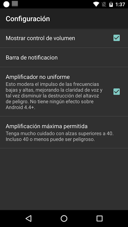 Mediante la instalación de esta aplicación usted acepta que no hará a su creador responsable de los daños en el hardware o la audición, y usted lo está utilizando a su propio riesgo. Considera que se trata de software experimental.
