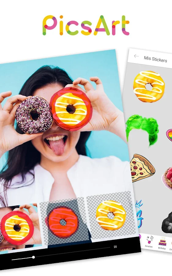 Millones de personas usan PicsArt porque ofrece cientos de poderosas herramientas de edición de fotos (creador de collages, filtros, recorte de fotos y mucho más), miles de paquetes de cliparts gratis, fuentes, stickers, plantillas de collages - integradas en un poderoso editor de fotos, ¡y es gratuito! El editor de fotos, fabricante de collages y herramienta de dibujo PicsArt es la mejor manera de transformar tus fotos en obras de arte, y expresar tu creatividad con el mundo.