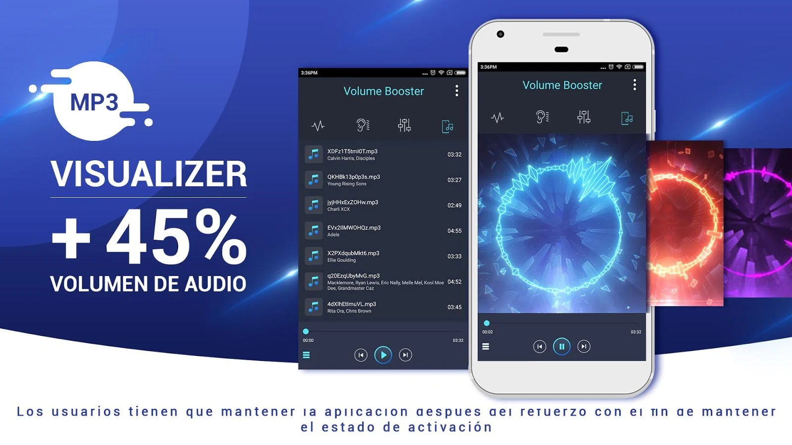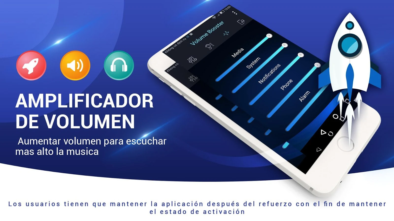 a amplificador de volumen en musica de su teléfono móvil en un 30% - 40% con un solo toque sin distorsionar el sonido.