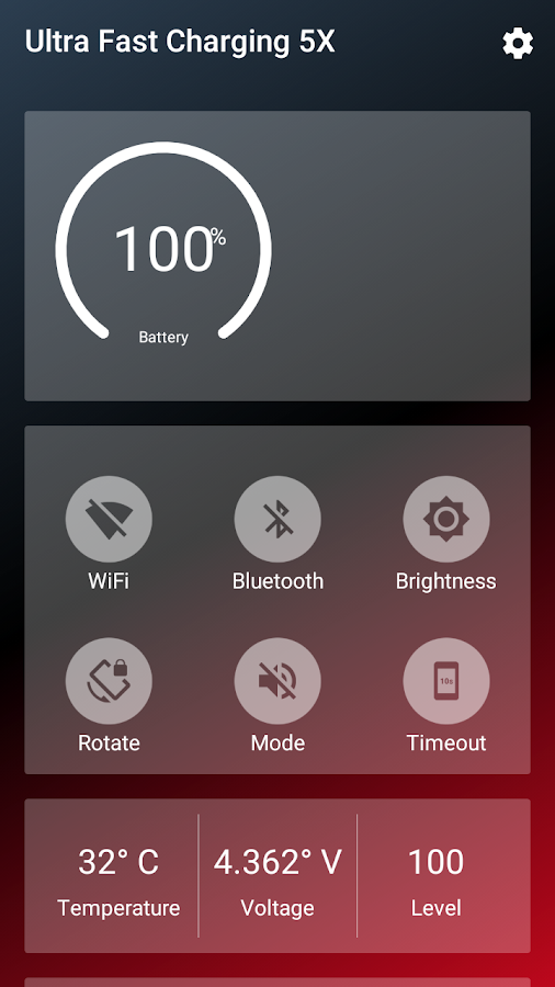 Ultra 5x de carga rápida le ayuda a escanear todos los servicios que están consumiendo la batería del teléfono incluyendo Bluetooth, GPS, Wi-Fi, datos móviles, el brillo de la pantalla de alta, el tiempo de espera de la pantalla, etc.