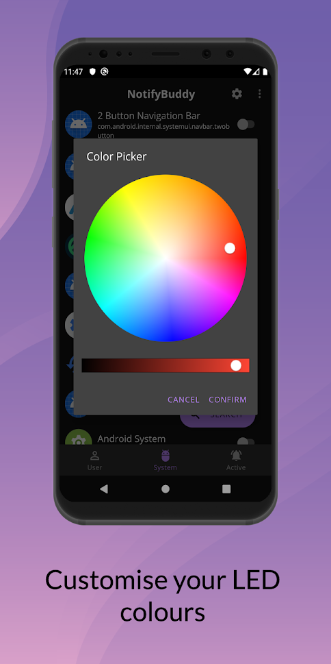 3 Seleccione las aplicaciones para las que desea recibir notificaciones, eligiendo un color